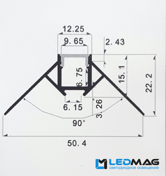 Світлодіодний профіль для гіпсокартону кутовий, для зовнішнього кута. Під одну лід стрічку шириною до 8 мм.